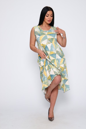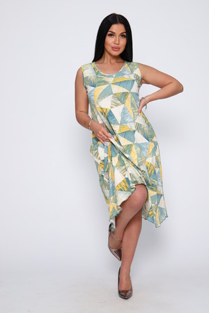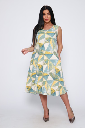 Сарафан женский расклешенный. Сарафан выполнен из ткани кулирка трикотаж. Рисунок соответствует трендам этого года. Имеет расклешенный силуэт от груди. Горловина и пройма обработаны окантовкой. Низ изделия обработан краевой. По бокам карманы. Сарафан легкий, удобный. Скроет все ваши недостатки, также можно использовать ремешок для другого образа, который подчеркнет вашу фигуру.