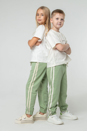 Брюки джоггеры с карманами по бокам - вариант на каждый день. Джоггеры для мальчика или для девочки незаменимая вещь детского гардероба. Детские спортивные брюки для мальчика и девочки с лампасами и манжетами, стильные, удобные, практичные. Отлично подойдут Вашему ребенку как для повседневной носки и активного отдыха, так и для домашнего отдыха и прогулок, для сада или школы. Мягкие штаны представлены в разных цветах. Брюки к низу заужены, сбоку оформлены лампасами, два кармана, в поясе шнурок для удобной посадки.