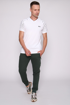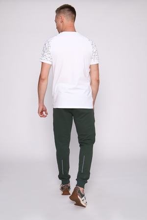 Брюки мужские изготовлены из качественной износоустойчивой ткани на кокетке. Пояс на резинке дополнен шнурком для дополнительного регулирования объeма талии. Боковые врезные карманы на молнии, у кармана светоотражающий логотип. Сзади манжета так же нанесена светоотражающая печать в виде вертикальной полосы. Низ брюк на манжете. Брюки подойдут для активного отдыха, занятий спортом и прогулок.