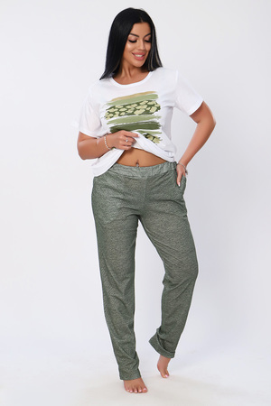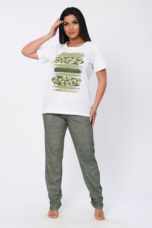 Уютный женский костюм из 100% хлопка с озорным летним рисунком на полочке. Костюм состоит из кофты с короткими рукавами и брюк. Яркий цветочный принт на кофте будет оставаться ярким и качественным даже после многочисленных стирок. Брюки сшиты из яркой, качественной, натуральной трикотажной ткани. Костюм идеально подойдет для прогулок, занятий спортом или для повседневной носки. В этом костюме вам будет очень удобно, при этом вы будете себя чувствовать комфортно и расслабленно.