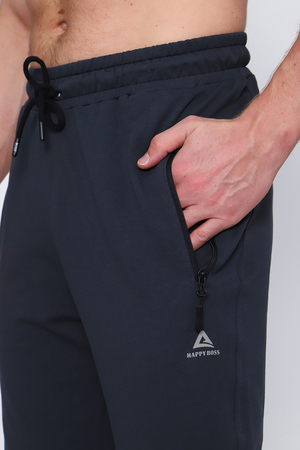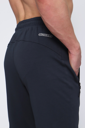 Мужские спортивные брюки изготовлены из качественного футера с лайкрой, ткань не линяет, не вытягивается, не скатывается после стирок. Материал приятен к телу, хорошо пропускает воздух. Пояс на резинке, дополнен шнуром для дополнительной фиксации на талии, низ брюк на манжете. Два прорезных кармана на молнии украшены интересными пуллерами. Особенностью кроя является вытачка на уровне колена, которая препятствует вытягиванию ткани. У кармана нанесена небольшая печать-логотип. Брюки имеют идеальную посалку за счет кокетки сзади. В целом смотрятся лаконично, не броско, не вызывающе: 00000000000000000000000подойдут для любой возрастной категории