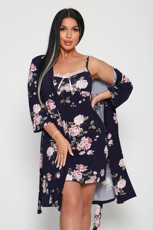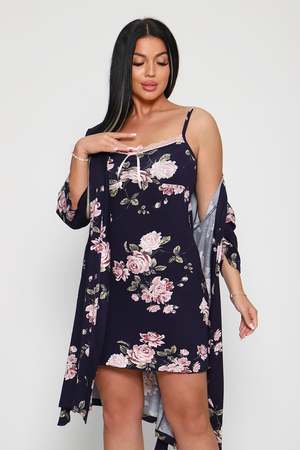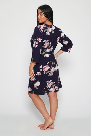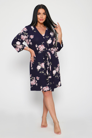 Халат из вискозы,укороченный на запах,рукав ниже локтя,размеры спаренные на модели 46-48 размер.Идеально подойдет к модели 78513.