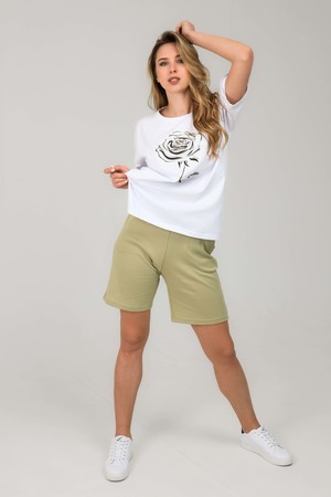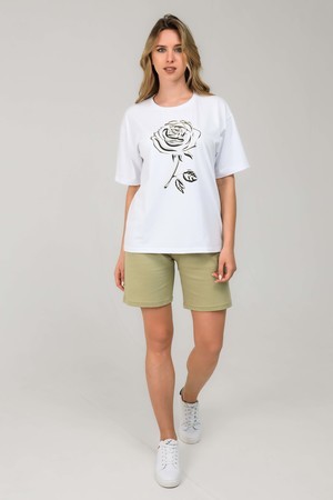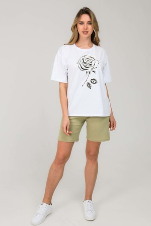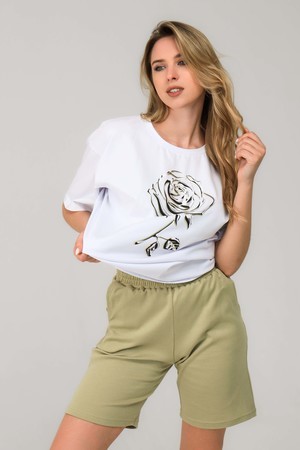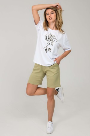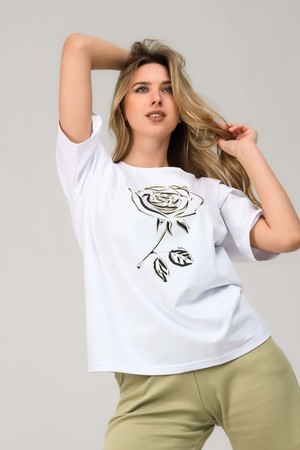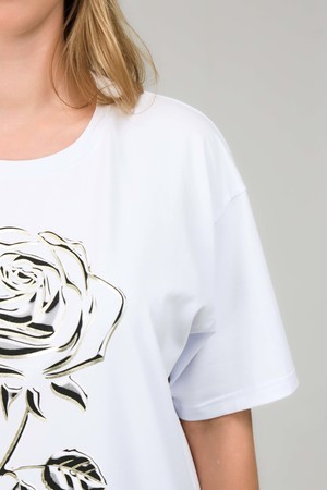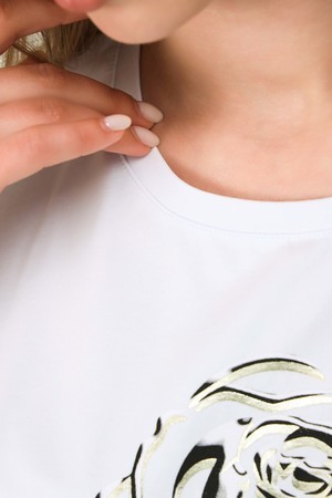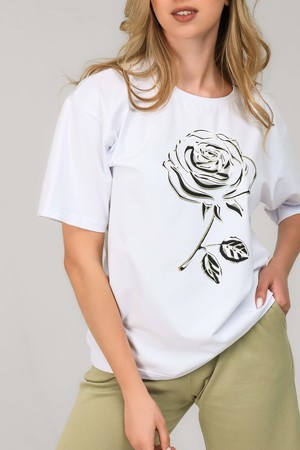 Женская футболка прямого свободного кроя - очень удобная, лёгкая и стильная. Эффектно смотрится и подходит на каждый день. Изделие изготовлено из высококачественного хлопка. Добавление эластана способствует длительному сохранению формы и цвета. Длина рукава указана в измерениях от точки основания шеи. Горловина обработана киперной лентой. На этой модели использована специальная техника нанесения фольги, с помощью которой выделены отдельные участки изображения. Эффект 3Д. Качественно. Уютно. Для тебя.