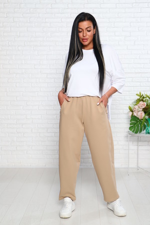 Татьяна Семеновна24.08.2023 в 08:09Влюбилась в эти брюки. Брала 46 р., цвет песочный. Легкие, свободные.