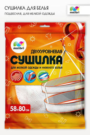 Сушилка MALIBRI двухуровневая идеальна для сушки деликатной, мелкой одежды, а также свитеров и другой одежды, которая не подлежит сушке на бельевой веревке.