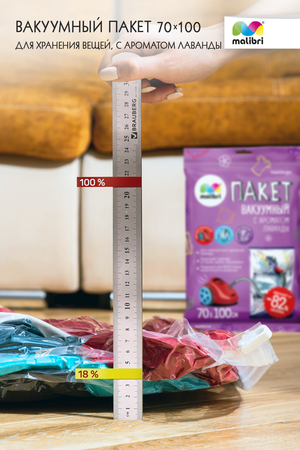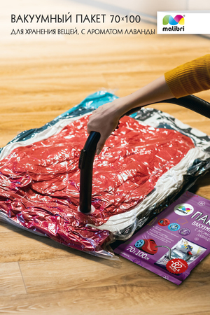 Пакет вакуумный MALIBRI с ароматом лаванды 70х100см предназначен для компактного хранения и перевозки одежды, постельных принадлежностей, мягких игрушек и т.д. Обеспечивает герметичную защиту вещей от влаги, пыли, насекомых и запахов.
