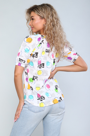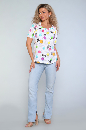 Туника полуприлегающего силуэта с короткими рукавами - реглан и полукруглым низом. Горловина и низ рукавов обработаны с эластичной тесьмой. Комфортна для повседневной носки.