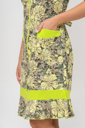 Женский халат на молнии выполнен из 100% хлопчатобумажной ткани. Модель дополняет яркая отделка по рукавам, карманам и низу изделия. А пояс на линии талии поможет легко смоделировать женственный силуэт и при этом чувствовать себя легко и непринуждённо. Данная модель прекрасно подойдёт для дома, дачи и отдыха, создавая по-настоящему яркий образ и хорошее настроение! Рост модели на фото 165см.
