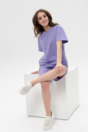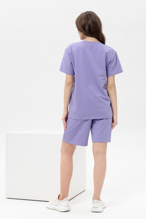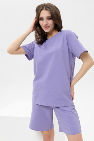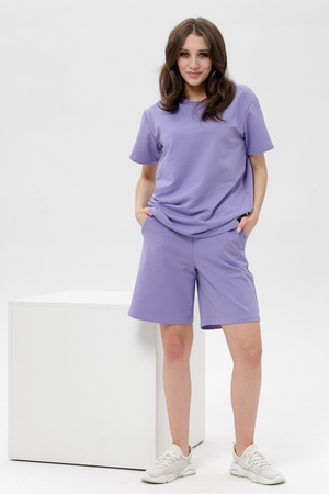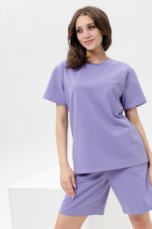 Женский костюм из футболки с шортами. Верх: однотонная футболка с коротким рукавом. Комфортная футболка для дома и занятий спортом. Актуальный крой и трендовые расцветки модели делают её универсальной для летнего гардероба. Низ: Шорты свободного покроя с карманами. Костюм спортивный в приятных модных расцветках. Комплект будет идеально смотреться как домашний и как спортивный на летний сезон. Костюм сшит из футера. Это износостойкая, приятная на ощупь, мягкая ткань из натурального хлопка. За ней легко ухаживать