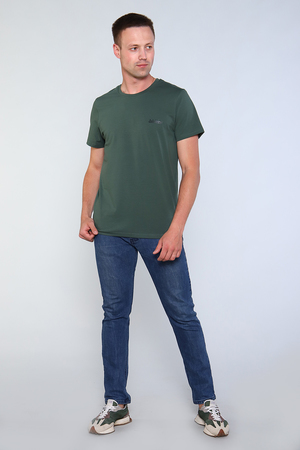 Футболка мужская однотонная представлена в четырёх цветах, изготовлена из качественной кулирки с лайкрой. Ворот футболки округлый. Изделие дополнено лаконичной печатью на груди, также печать нанесена на спинке которая придаёт индивидуальность образу.