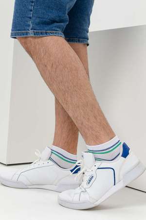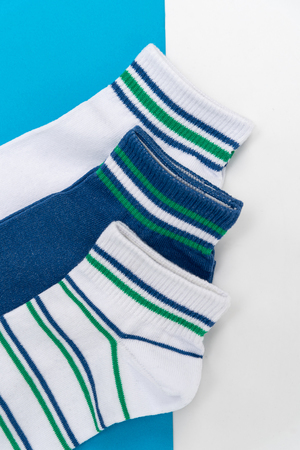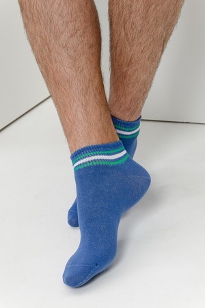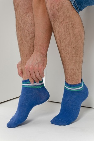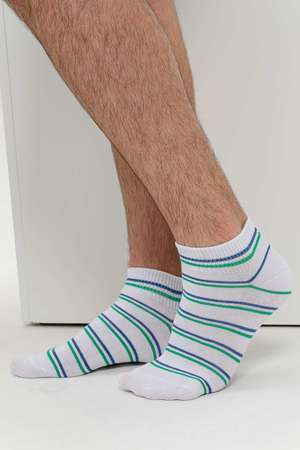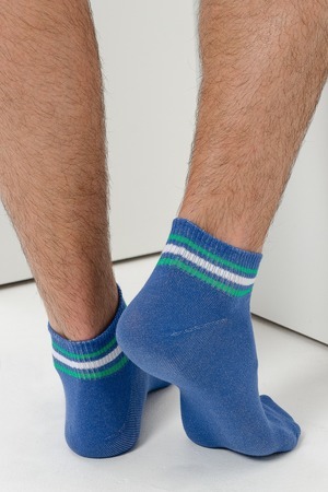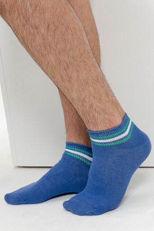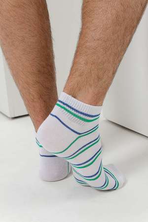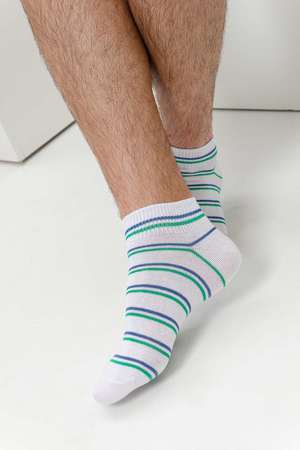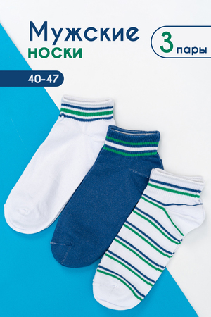 Комплект мужских носков для лета и спорта. В комплекте 3 пары с разными полосками в одной цветовой гамме. Две пары с полосками на резинке, одна пара носков полностью полосатая. Отлично сочетаются с любой обувью - лучший вариант на каждый день.