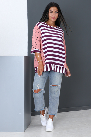 Туника женская летняя прямого силуэта, округлый воротник, рукав 3/4 (длина от шва)на манжете, низ изделия также на манжете. Легкая и удобная.