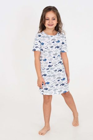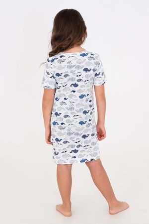 Сорочка киты. Для подростков и детей. Яркая туника MY KO свободного кроя выполнена из трикотажного полотна кулирка, в составе которого только хлопок (100%). Очень комфортное домашнее платье детское дарит свободу движений, идеально подходит для ежедневного использования дома, для сна и отдыха, на даче, в поезде, можно взять с собой в поход или поездку на море. Ночнушка из натурального хлопка. Удобная длина выше колена. Сорочку можно носить как домашнее платье. Натуральная ткань приятна к телу, в ней комфортно спать и проводить время дома. Износостойкий материал не боится частых стирок, сохраняет яркость принта надолго.