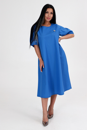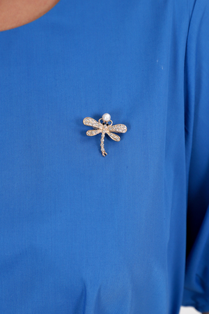 Идеальным выбором для лета может стать платье трапеция со свободным силуэтом, который не облегает тело и обеспечивает комфорт при носке за счет плотного трикотажа. Помимо этого, платье обладает дополнительной функциональностью благодаря боковым карманам, расположенным в шве. Для придания изюминки образу, создатели добавили на платье брошь - стрекозу.