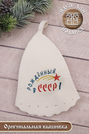 Шапка для бани изготовлена из натурального войлока и имеет универсальный размер, что делает ее удобной для ношения в бане или сауне. Головной убор защитит вас от перегрева во время СПА процедуры. Банная шапочка имеет красивую качественную вышивку "Рожденный в СССР"