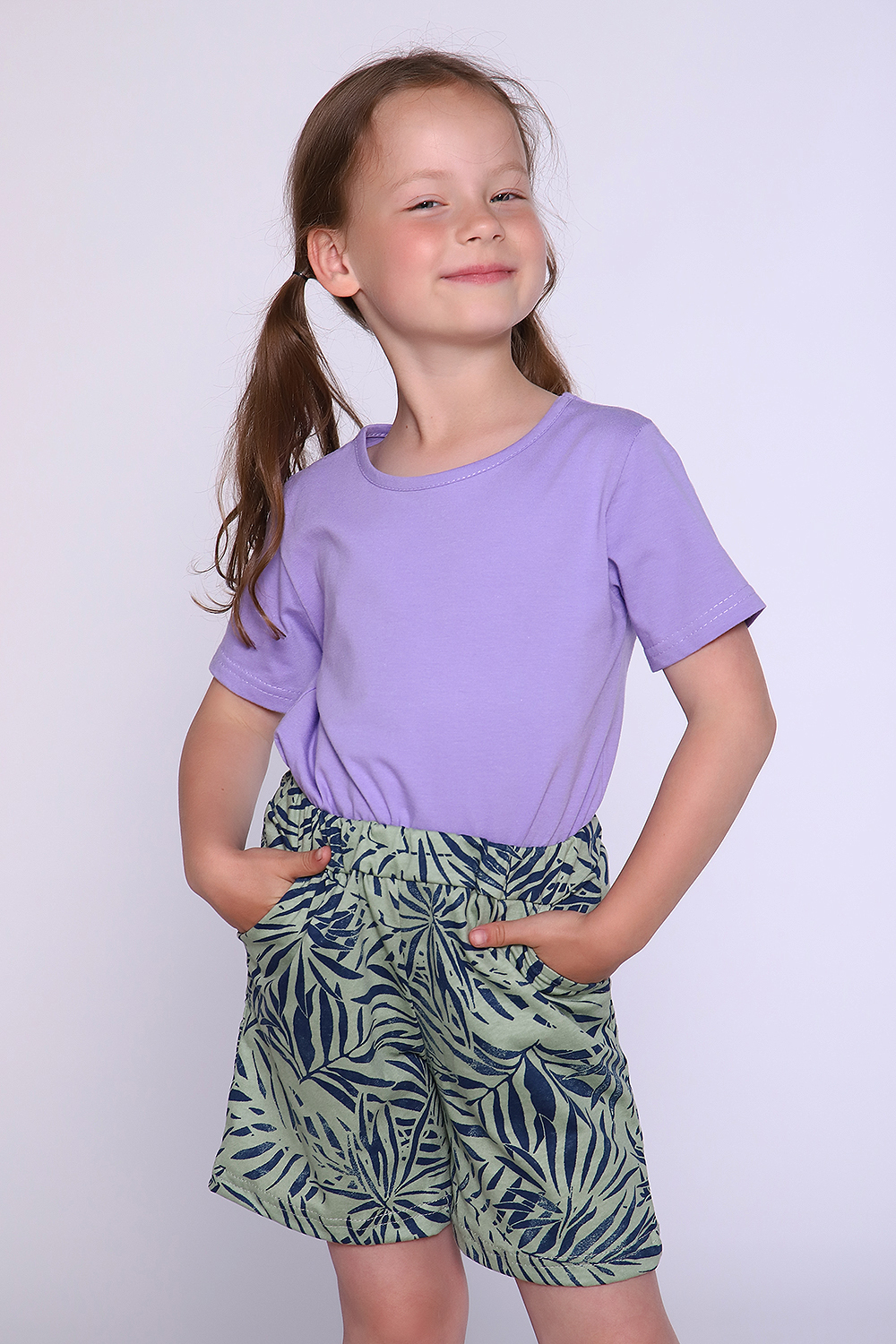 Прикольные шорты на девочку, прямого кроя с карманами.