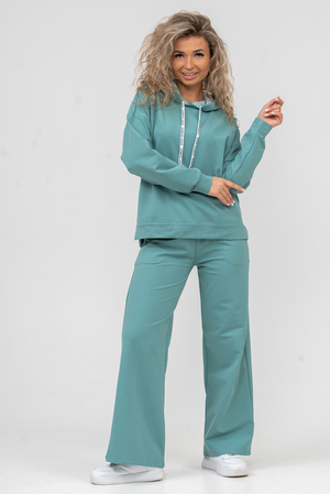 Женский костюм 2-ка выполнен из футера высокого качества с хлопком и небольшим добавлением полиэстера и лайкры, что позволяет изделию не скатываться и оставлять идеальный внешний вид на долгое время. Костюм состоит из толстовки и брюк. Изделие выполнено в стиле умеренный "oversize", модном и излюбленном тренде современности. Линия плеча спущена, а рукав и низ толстовки дополнены манжетами. Брюки палаццо с высокой посадкой, боковыми карманами, и поясом обработанным на специализированной поясной машине, делают их более удобными и комфортными. Свободный крой прекрасно будет смотреться на дамах с любой фигурой. Костюм модных расцветок - это удачный выбор для поездок в отпуск, занятия спортом, на пикник, для активного отдыха и прогулок по городу. А также гармонично сочетаться как с кроссовками, так и с туфлями, балетками или босоножками. Костюм такого плана - это то, что выделяет Вас среди других, придавая изюминку и непосредственность новомодным аутфитам.