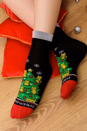 Женские новогодние носочки с разноцветным рисунком. Принт в Новогодней тематике создаст Вам праздничное настроение. Отличный сувенир на праздник. В упаковке 1 пара.