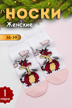 Женские новогодние носки с изображением символа нового года. Отличный подарок!