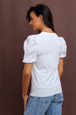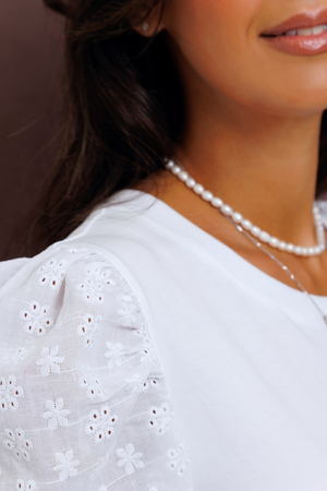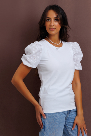 Женская футболка премиум качества из мягкого трикотажа свободного силуэта. Горловина округлая. Изюминкой эту модель делают объемные и рукава из перкали с шитьем, создавая кружевной эффект. Такая модель - отличная база для создания брендовых луков в стиле casual. Приобретите легкость, комфорт и свободу на каждый день, ведь эта вещь полюбится Вами с первого прикосновения. Рекомендуем сочетать с брюками и джинсами пастельной цветовой гаммы. Все товары бренда Raposa производятся в России (Иваново), используются только ткани премиального качества. Ограниченная коллекция только для этой весны!