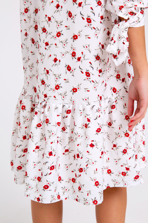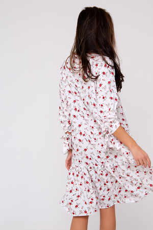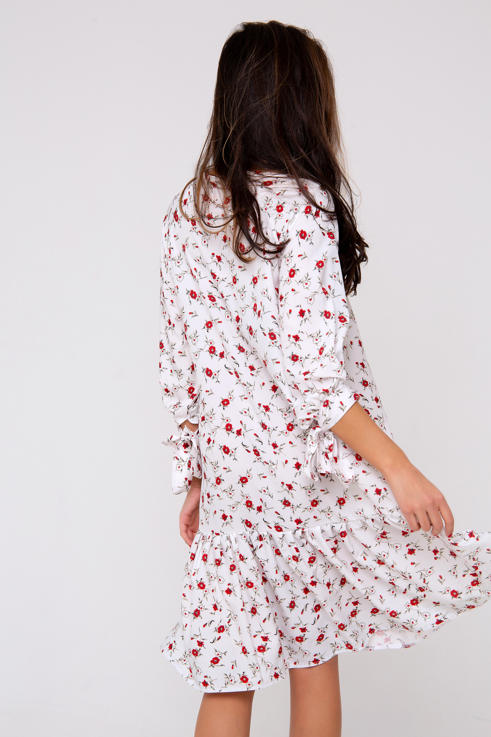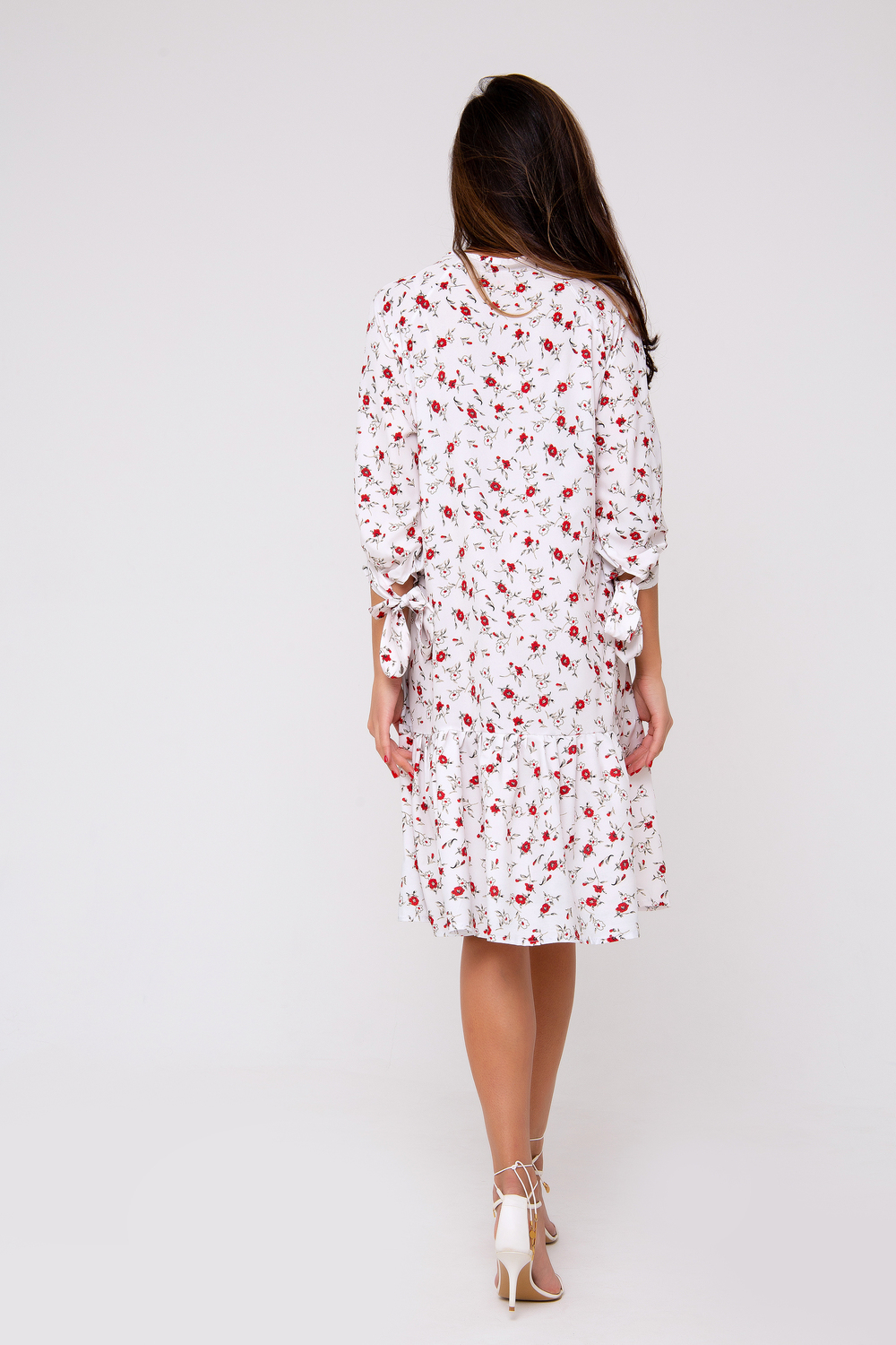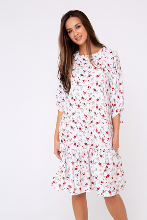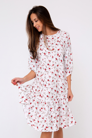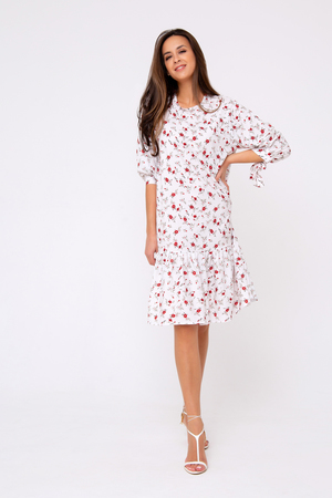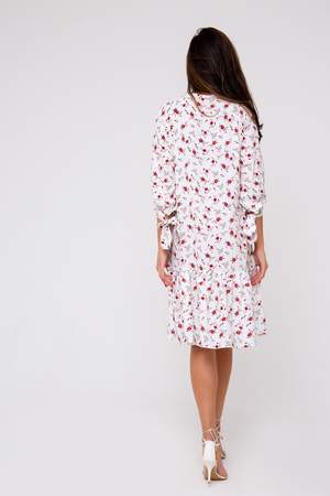 Платье-миди свободного кроя выполнено в нежнейшем молочно-белом цвете. Женственность модели подчеркивает оригинальный принт в стиле «petit fleur» по всей длине изделия. Свободный крой подчеркнет только достоинства фигуры и добавит легкости и игривости всему образу в целом. Рукав - реглан. Горловина округлая. Модель дополнена воланом по краю изделия. Приобретите легкость, комфорт и свободу на каждый день, ведь эта вещь полюбится Вами с первого прикосновения. Все товары бренда Raposa производятся в России, используются ткани только премиального качества. Ограниченная коллекция только для этой весны!