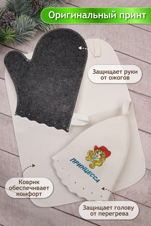 Наш оригинальный набор для бани включает в себя шапку, рукавицу и коврик. Это незаменимые аксессуары для любителей попариться в бане и сауне. Шапка защитит волосы от сухости и ломкости, голову от перегрева и предотвратит появление головокружения. Рукавицы – это повышение комфорта при использовании банного веника и безопасность ваших рук от появления ожогов. А индивидуальный коврик защитит от высоких температур при контакте с горячей лавкой в парилке. Оригинальная вышивка выполнена качественно и не сотрётся в процессе использования. На изделиях имеются петельки, с помощью которых их можно повесить на крючок в предбаннике. Такой набор станет отличным подарком для любителей отдыха в бане или сауне.