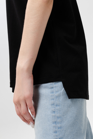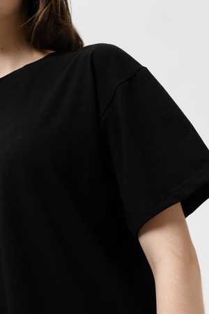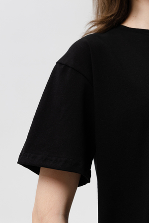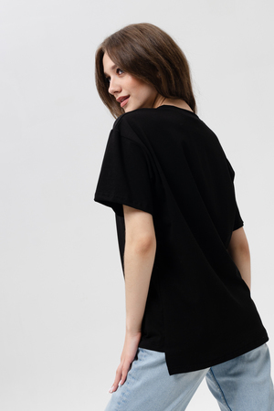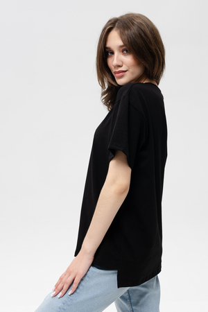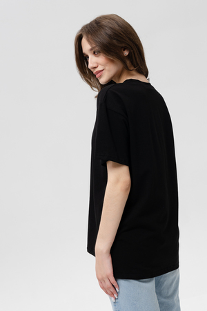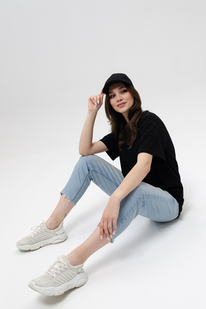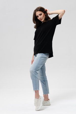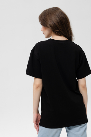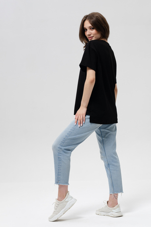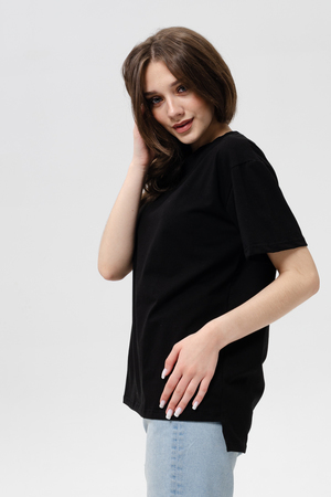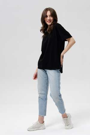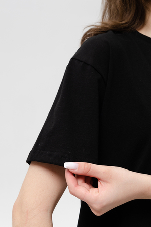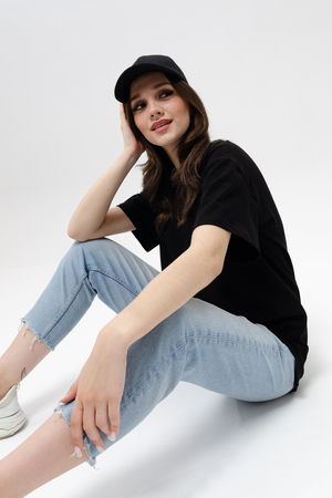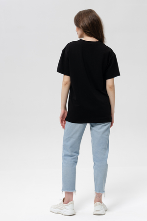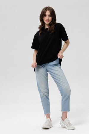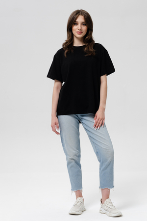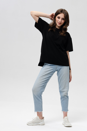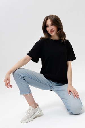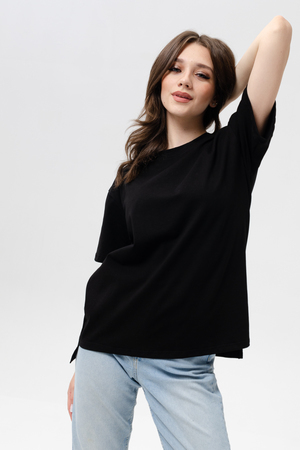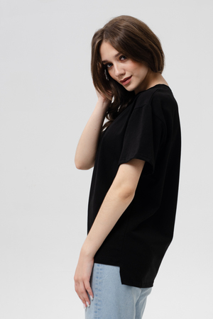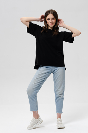 Футболка женская оверсайз свободного кроя со спущенным плечом. Модель выполнена из трикотажа, тактильно приятна к телу и не просвечивает. Футболка подходит для любого типа фигуры, так как имеет свободный крой. Свободную футболку можно сочетать с джинсами, джоггерами и юбками. Ткань футболок долгое время сохраняет свои первоначальные свойства.