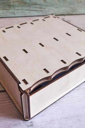 Снимите крышку и поставьте ее вертикально в соответствующие отверстия в сундучке.