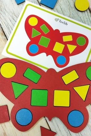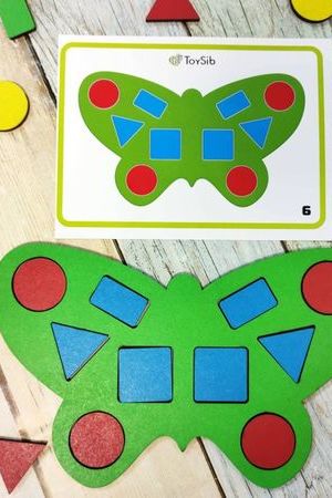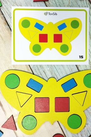 - попросите раскрасить бабочку геометрическими фигурами по образцу, изображенному на карточке.