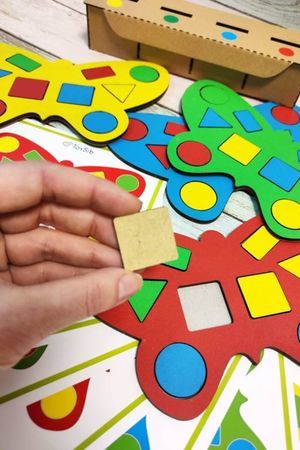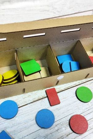 - Перемешайте фишки, устройте соревнования - кто быстрее отправит все фигуры в сортер.
