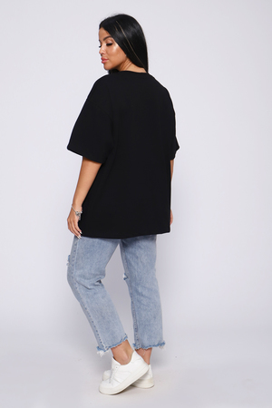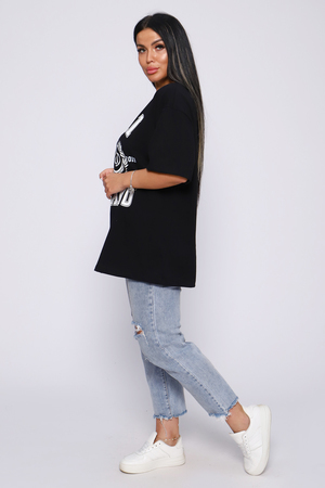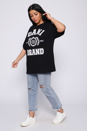 Базовая женская футболка оверсайз из 100% хлопка с принтом в виде надписи. Футболка свободного кроя, хорошо сочетается с джинсами, брюками, юбкой, как в заправленном виде, так и навыпуск. Легко создать спортивный или повседневный стиль. Плотность ткани 240гр/м2.