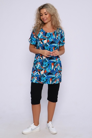 Костюм состоит из туники и бридж. Бриджи с карманами длиной ниже колена. Туника с короткими рукавами. Неотъемлемый элемент домашнего гардероба.