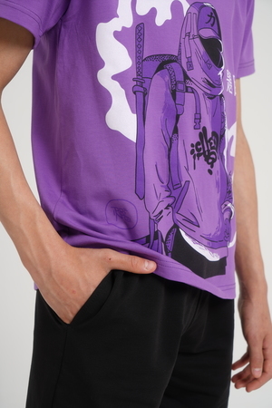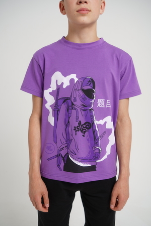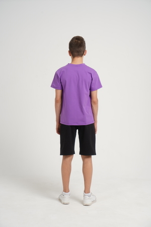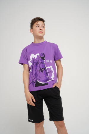 Костюм для подростков состоит из двух изделий - футболки и шорт. Футболка выполнена из ткани с абстрактным принтом. Футболка прямого свободного кроя, круглый вырез горловины, втачной рукав. Шорты выполнены из футера 2-х нитки, прямого кроя, с удобной посадкой. На передней половинке шорт - печать.