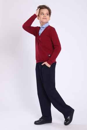 Джемпер-обманка Jersey Lab с длинным рукавом одновременно сочетает в себе 2 предмета гардероба: джемпер в классическом стиле и имитацию рубашки, с застежкой на пуговицы. Рубашку-обманку не нужно заправлять в брюки и она не выбивается из под одежды, как рубашка в классическом варианте. Изделия отшиваются из кулирки высокого качества пенье, низ рукавов и джемпера на манжете. Джемпер-рубашка - это оптимальное решение для создания стильных образов в школу и праздничных мероприятий. Джемпер для мальчика изготовлен из плотного хлопкового полотна, а воротник из рубашечной ткани.