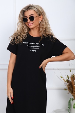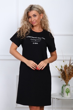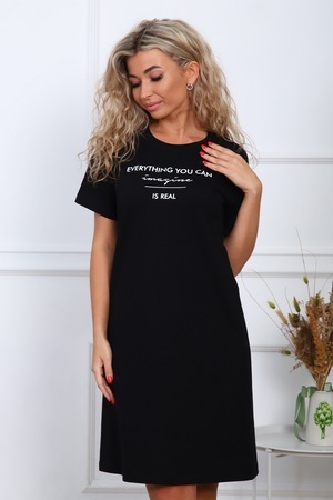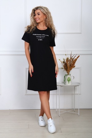 Платье женское классическое с короткими рукавами, с двумя боковыми карманами, с принтом на груди.