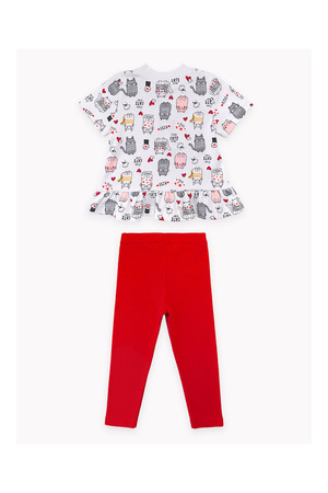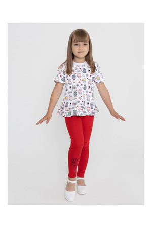 Костюм "Тиа" для девочек, состоящий из футболки и лосин, предназначен для летней прогулки. Отличный вариант на каждый день.Лосины оформлены принтом-шелкография на ткани. Округлый ворот футболки, низ футболки с баской, которая придаёт нежность и лёгкость. Лосины на резинке.