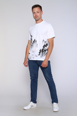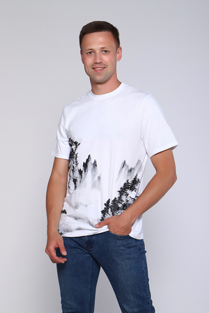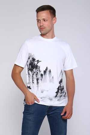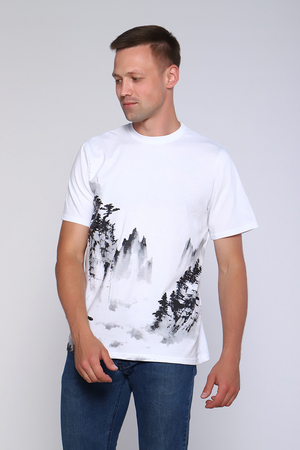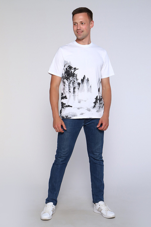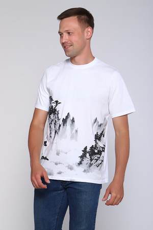 Мужская футболка с оригинальным принтом, из кулирного полотна ( 100% ) хлопок. Футболка с коротким рукавов, округлой горловиной. свободного кроя в двух классических цветах.