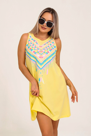 Представляем Вам летнее платье под романтичное настроение! Платье представлено в 5 расцветках - яркие жёлтый, голубой и розовый цвета выделят Вас и прекрасно подчеркнет Вашу женственность, а базовые черный и, конечно же, молочный цвета не утратят своей актуальности. Оно придется по душе каждой женщине и девушке, Платье средней длинны, свободного трапециевидного кроя, Изготовлена модель из плотной, мягкой и очень приятной к телу ткани - высшего качества! Летнее платье женское подойдет на море как домашнее платье на прогулку, в кафе, в отпуск, путешествие, Расклёшенная, свободного кроя модель платья подойдёт для абсолютно любой фигуры, Модель отлично подойдет как платье для беременных, будущих мам и кормящих. Платье отлично сядет на высоких и невысоких благодаря хорошо продуманному крою. Это нежное и нарядное платье не просвечивает и не электризуется. Широкий размерный ряд. Плотность ткани 170гр/м2. Это качество ткани люксовых изделий. Размер на модели 46.
