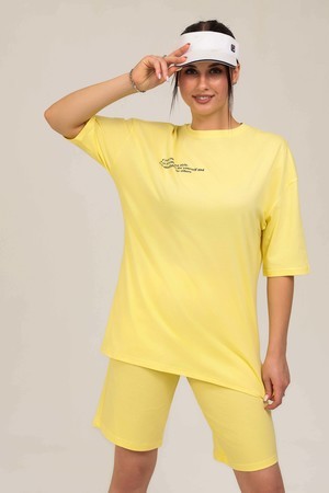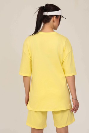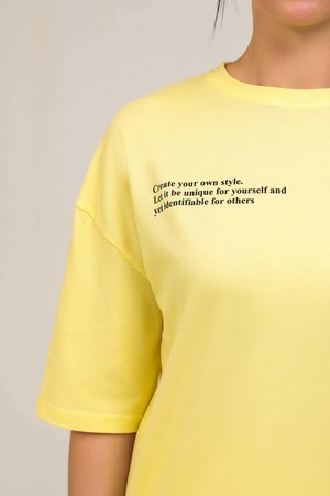Удлиненная женская футболка длинной до середины бедра представлена в 5 расцветках - яркие жёлтый, сиреневый и розовый цвета выделят Вас и прекрасно подчеркнет Вашу женственность, а базовые черный и, конечно же, белый цвета не утратят своей актуальности. Модель прекрасно смотрится с шортами арт. 50552. В прохладную погоду хорошо будет смотреться в паре с джинсами или брюками. На модели нанесена печать которая прекрасно контрастирует со светлыми тонами изделия. Модель выполнена из хлопка высшего качества плотность хлопка 170гр/м2. Это качество ткани люксовых изделий. Размер на модели - 48.