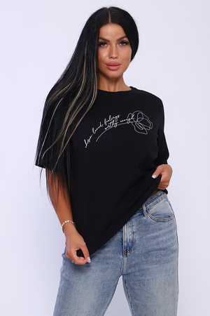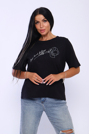 Футболка с рисунком маленькой розочки придает изделию неповторимый шарм и красоту! Прямой силуэт, выверенная длина рукава до локтя, обработка деталей вкруговую с закрепкой для прочности. Горловина выполнена из основной ткани. Большие размеры!