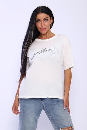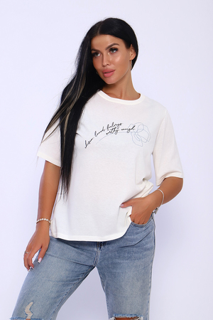Футболка с рисунком маленькой розочки придает изделию неповторимый шарм и красоту! Прямой силуэт, выверенная длина рукава до локтя, обработка деталей вкруговую с закрепкой для прочности. Горловина выполнена из основной ткани. Большие размеры!
