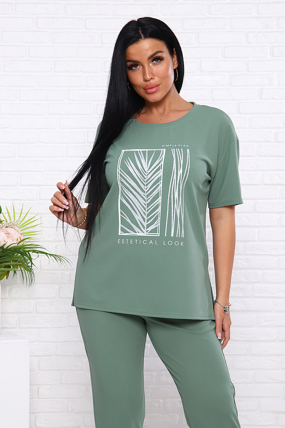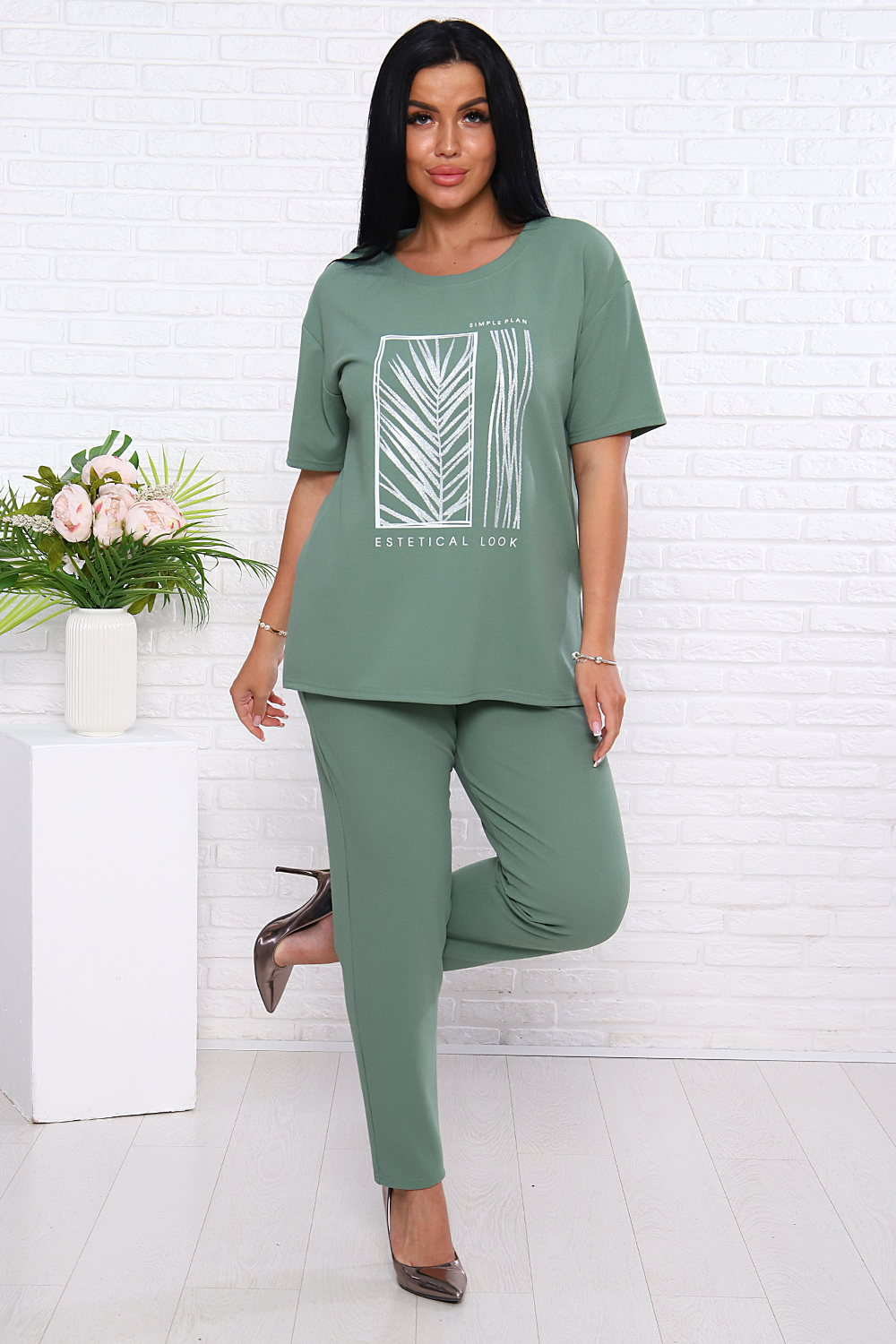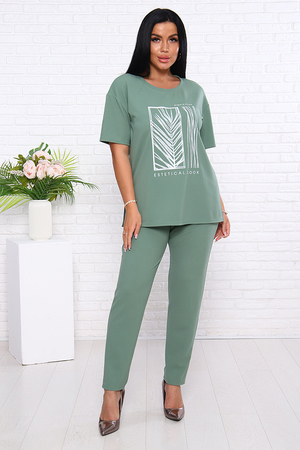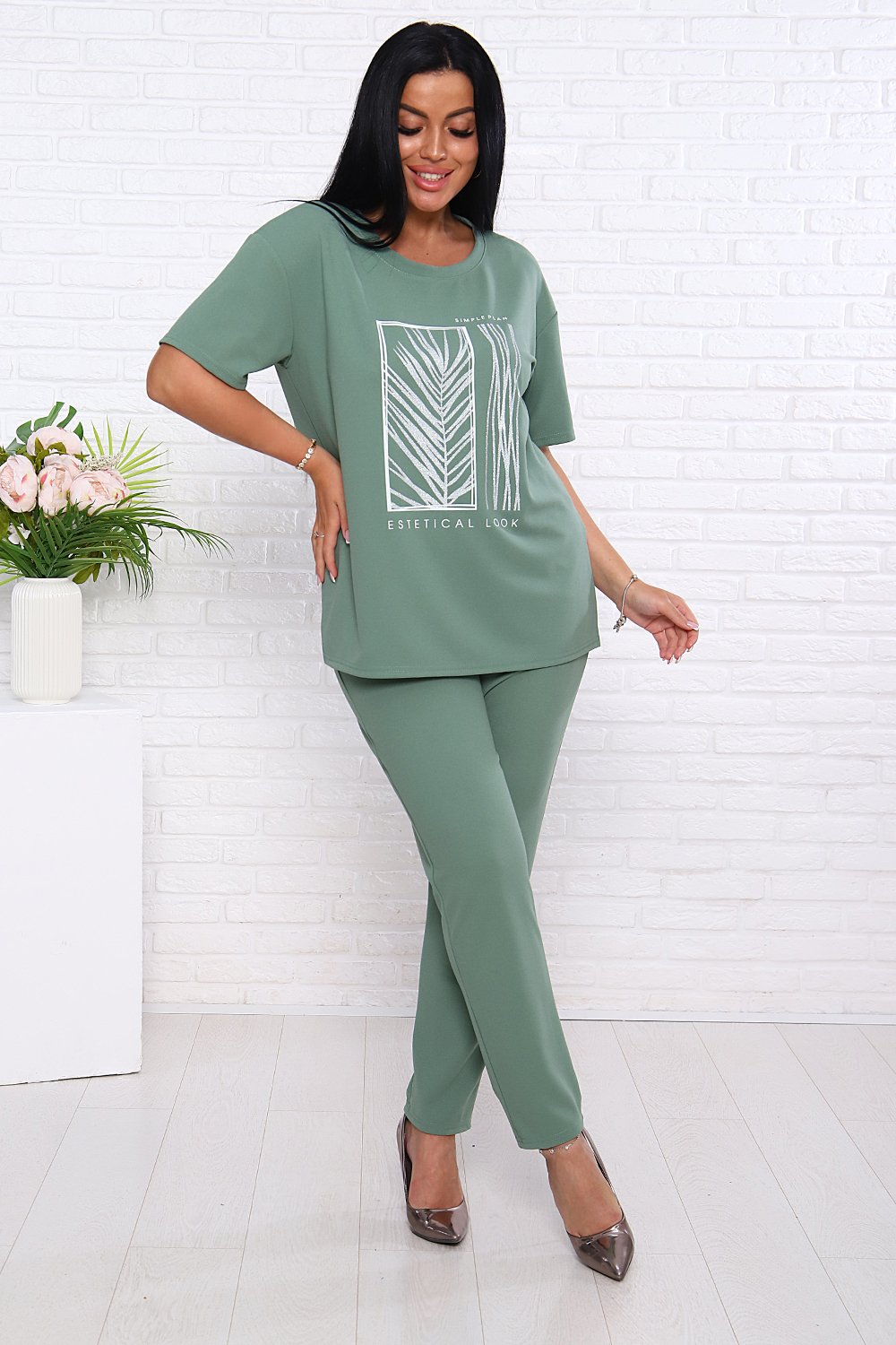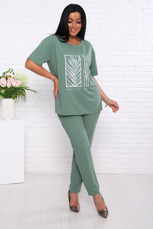 Костюм брючный из трикотажной стрейчевой ткани креп, на передней части верха красивый и стильный принт. Модель свободного силуэта, пояс брюк с эластичной тесьмой, ткань комфортная и приятная к телу, такой костюмчик замечательно впишется в ваши будни, а также подойдёт и для торжественных моментов и вечеринок! В замерах длина рукава измерялась от начала горловины.