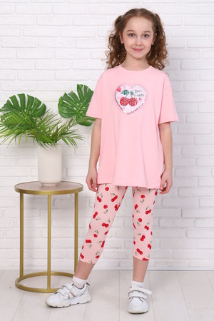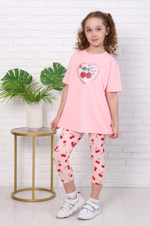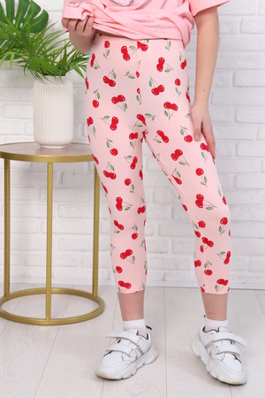 Лосины для девочек дошкольного и младшего школьного возраста, из трикотажного полотна кулирка с лайкрой с рисунком. Лосины укороченные до середины икры. Верхний срез подогнут с резинкой. Низ подогнут.