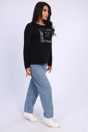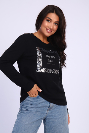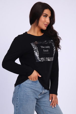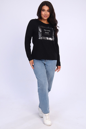 Женская футболка с длинным рукавом, полуприлегающего силуэта с качественным принтом из пайеток. Женская футболка с длинным рукавом, подходит для повседневного ношения , дома и на работе. Можно удачно совместить с джинсами, юбками, брюками, хорошо смотрится с пиджаком или кардиганом. Модный, современный дизайн не стесняет движений, кожа дышит.