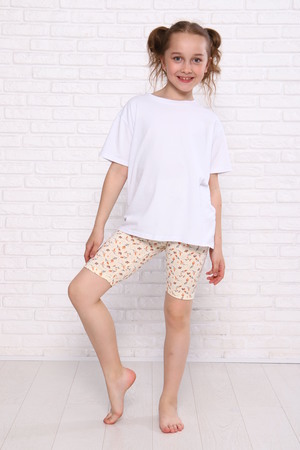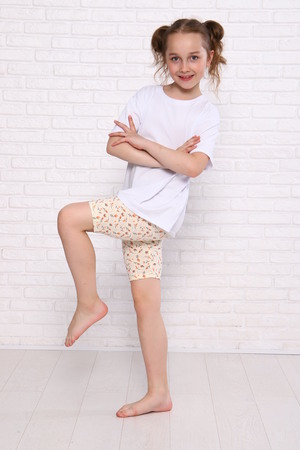 Велосипедки для девочек дошкольного, младшего и старшего школьного возраста, из трикотажного полотна кулирка с лайкрой с рисунком. Верхний срез подогнут с резинкой. Низ подогнут.
