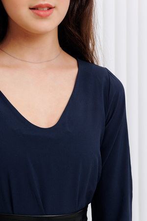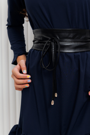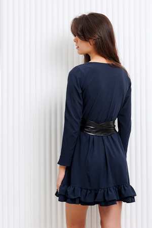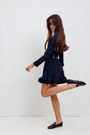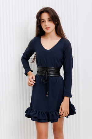 Платье для девочки Raposa темно-синего оттенка отлично подойдет для школьного мероприятия, такого как выпускной или последний звонок. Оно сочетает в себе требования школьной формы и при этом имеет стильный и элегантный вид. Длинный рукав оформленный воланом, оригинальный подол. Два пояса в комплекте позволят изменить общий образ и подчеркнуть талию. Учитывайте индивидуальные предпочтения и особенности фигуры, чтобы выбрать идеальное повседневное платье для девочки. Комплект: платье, пояс (ниагара), пояс (экокожа).