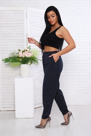 Брюки женские из трикотажа в полоску, элегантная классика в актуальном силуэте, с двумя комфортными карманами.