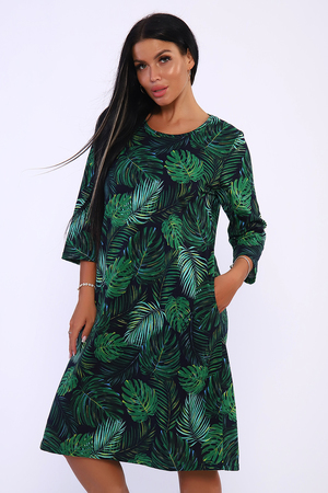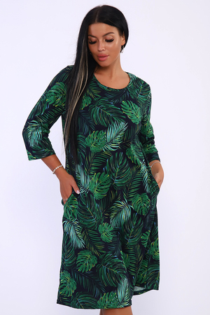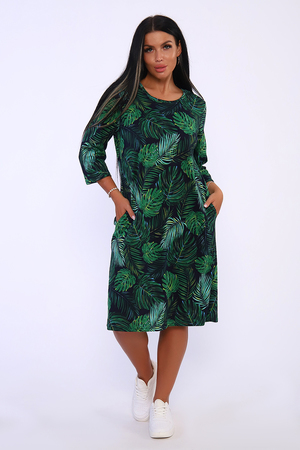 Платье полуприлегающего силуэта с карманами в боковых швах и рукавами длиной 3/4. Идеальный повседневный вариант.