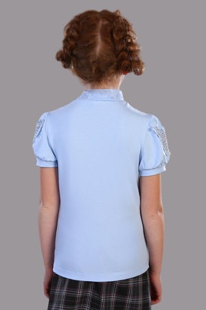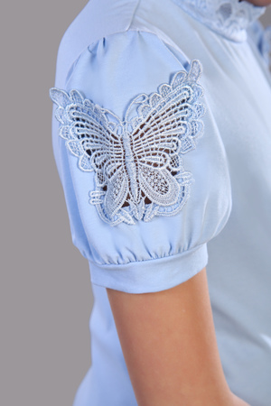 Яркая и нарядная блузка для девочки с короткими рукавами от бренда Jersey-Lab покорит сердце каждой маленькой модницы!Стильная детская рубашка с кружевом украшена нежными аппликациями с бабочками на рукавах. Это придает оригинальный стиль этой блузке. Нежные рукава-фонарики и кружевной воротник-стойка создают легкий и воздушный образ. Водолазка идеальна как повседневная школьная форма для детей.