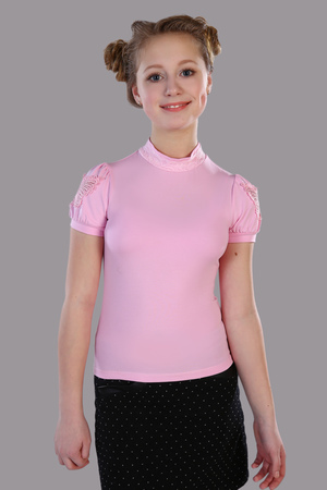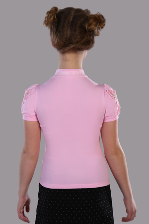 Яркая и нарядная блузка для девочки с короткими рукавами от бренда Jersey-Lab покорит сердце каждой маленькой модницы!Стильная детская рубашка с кружевом украшена нежными аппликациями с бабочками на рукавах. Это придает оригинальный стиль этой блузке. Нежные рукава-фонарики и кружевной воротник-стойка создают легкий и воздушный образ. Водолазка идеальна как повседневная школьная форма для детей.